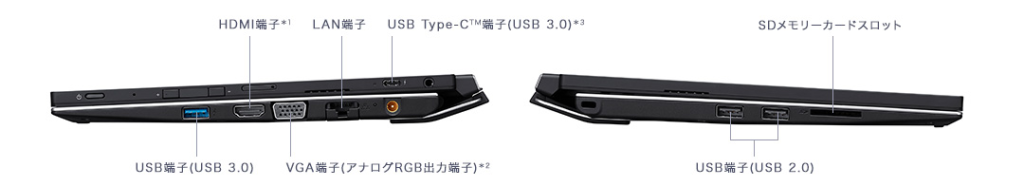 【USB】タブレット側にUSBtypeC、キーボードユニットにUSB3.0×1、USB2.0×2